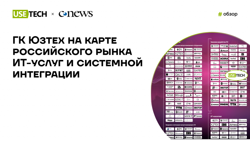 CNews, ориентируясь на тенденции рынка, впервые опубликовал карты рынка ИТ-услуг и системной интеграции. И на обеих картах представлена ГК «Юзтех».